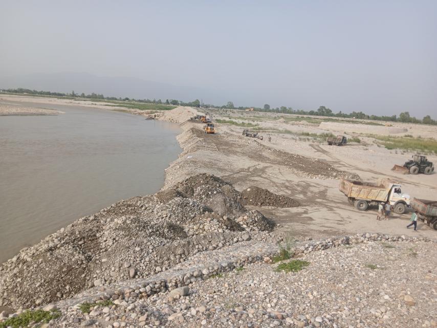 महाकाली नदिमा सेनाले तटबन्ध बनाउदै