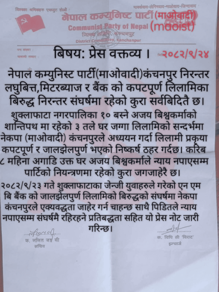 प्रतिनिधिसभा निर्वाचन–२०८२ अन्तर्गत कञ्चनपुर क्षेत्र नम्बर ३ बाट सिफारिस गरिएका उम्मेदवारमध्ये नेकपा (माओवादी) का केन्द्रीय सदस्य तथा कञ्चनपुर जिल्ला इन्चार्ज विष्णु प्रकाश उपाध्याय पनि रहेका छन्। उपाध्याय २०६४ सालको स्ववियु निर्वाचनमा निर्वाचित नेता हुन्। उनी सुदूरपश्चिम विश्वविद्यालय आन्दोलनका संस्थापक विद्यार्थी नेता तथा आन्दोलनका क्रममा घाइतेसमेत भएका थिए। शैक्षिक सुधार आन्दोलनका धरोहरका रूपमा परिचित उपाध्यायले चर्चित पूर्व विद्यार्थी नेताको छवि बनाएका छन्। मिटरब्याज, लघुवित्त तथा बैंकहरूको अवैध लिलामी, अन्याय–अत्याचार, भूमिहीन सुकुम्बासीका समस्या, समानता र स्वतन्त्रतासहितको समाजवादका पक्षमा निरन्तर संघर्षरत रहँदै आएका उपाध्याय कञ्चनपुर क्षेत्र नम्बर ३ का अन्य उम्मेदवारका लागि बलियो चुनौतीका रूपमा देखिएका छन्।
