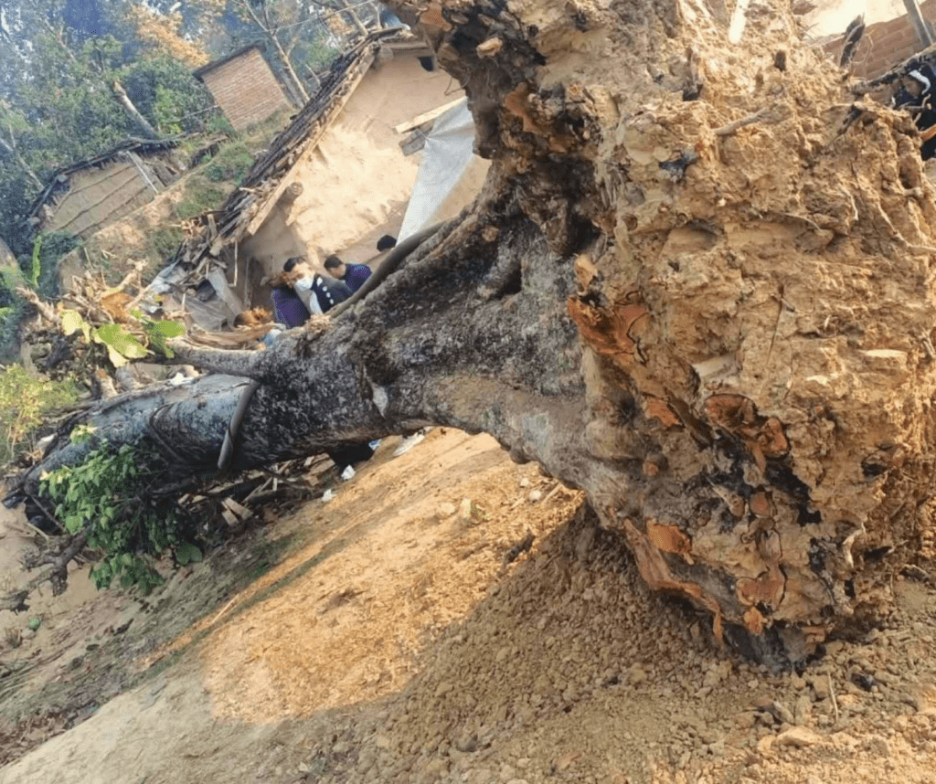 कञ्चनपुर: कञ्चनपुर जिल्लाको बेदकोट नगरपालिका–३ पेलितालमा फागुन १३ गते साँझ करिब ८:३० बजे कुसुमको रुख ढल्दा काठ र माटोले बनेको कच्ची घर भत्किएको छ। रुख घरमाथि ढल्दा घरभित्र रहेकी करिब ५० वर्षीया सारदा देवी महता च्यापिएर घटनास्थलमै मृत्यु भएको प्रहरीले जनाएको छ।