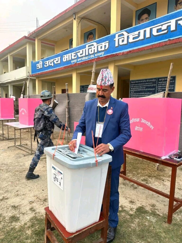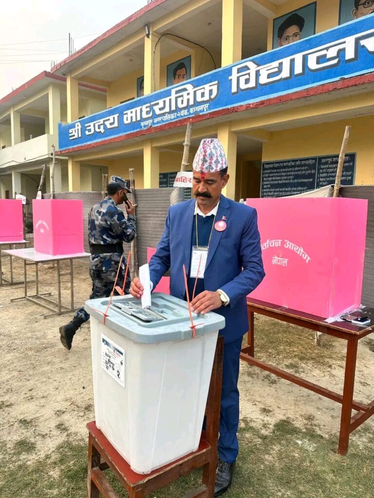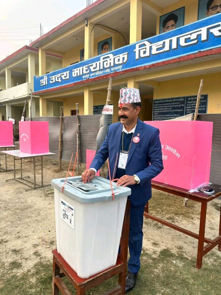 कञ्चनपुर निर्वाचन क्षेत्र नम्बर २ नेकपा एमालेका नेता बचन बहादुर सिंह कृष्णपुर नगरपालिका वडा नं २ मा रहेको उदय माध्यमिक विद्यालयमा रहेको बुथमा पहिलो मतदान गरेका छन। On मार्च 5, 2026 By Editor