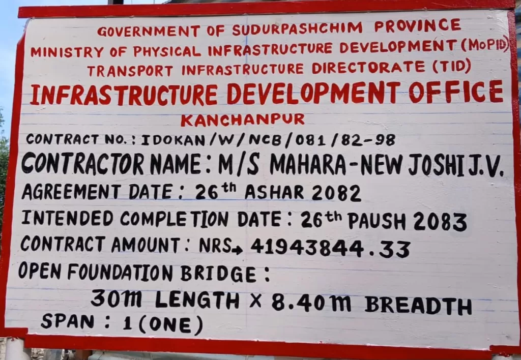 ४ करोड १९ लाख ४३ हजार ८ सय ४४ बजेट बराबरको पुल योजना बिना डि.पि.आर. को हुनसक्ने वा नसक्नेबारे पुर्वाधार बिकास कार्यालय, कंचनपुरका प्रमुख इन्जिनियरसंग बुझ्दा आफुलाइ यो बिषयमा कुनै जानकारी नभएको र कार्यालयमा समेत यो योजनाको डिपिआर नरहेको स्वीकार गरेका छन।